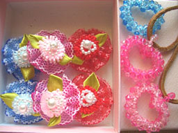 ‘sweet heart'のmichikoさんより皆にオソロのおリボンと手作りハートチョーカーとおやつ